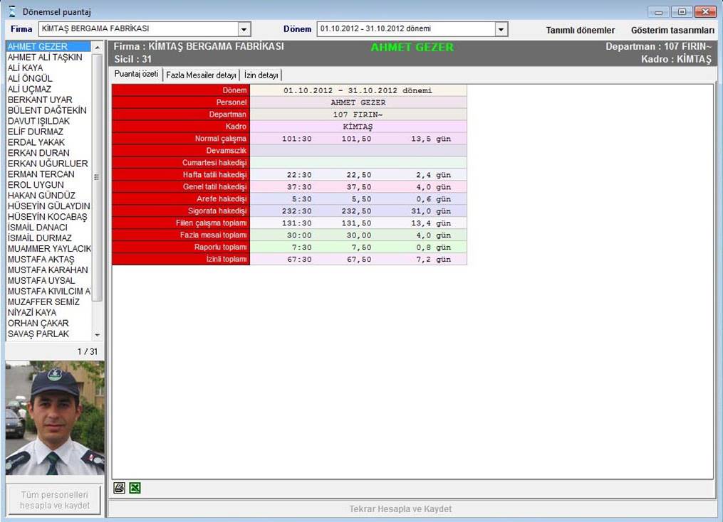 Sistem ile işletme içindeki personellerinin puantaj hesaplamalarını yapabilir, esnek vardiya tanımlamaları ve takipleri ile tüm çalışma hareketlerini takip edebilirsiniz. Ayrıca personellerinizin fazla mesai, vardiya veya işe geç kalma anlarını kayıt altına alarak işletmenizdeki çalışma ortamını daha disipline edebilirsiniz.